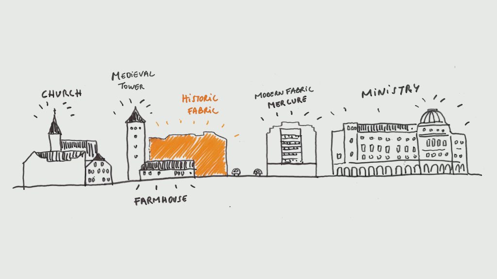 O dostavbě resp. úpravě lokality nároží ulic Revoluční a Lannova se uvažovalo již v poválečném období. V místech dnešní parcely Revoluční 30 sice stával od dob Václava IV. lázeňský dům, na který navázaly v pol. 19. století neogotické Eliščiny lázně, ty však byly spolu s mostem v roce 1940 zbourány. Centrální část Prahy tím přišla o svou vstupní ikonu a do čela Revoluční ulice se dostal dům č. p. 1502, který pro tuto funkci nebyl nikdy zamýšlen. Již od 60. let 20. století se objevovaly návrhy na jeho odstranění a dobudování nárožní dominanty. K těmto plánům se ale první krok udělal až v březnu 2022, kdy se po diskusi odborníků na urbanismus, architektů a investora přistoupilo k demolici a vytvořil se prostor pro nový projekt.